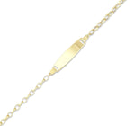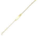 Детска гривна от 14 карата злато с плоча за гравиране. Идеалният подарък, когато се чудите какво да подарите на дете, което си има всичко. Моделът е наличен в трите цвята злато.
