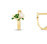 Обеците във форма на костенурка, изработени от 14 карата злато с цветен емайл, са очарователен и забавен избор за деца. Костенурките често символизират дълголетие и стабилност, което прави тези обеци подходящи и като символичен подарък.