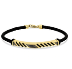 Тази изискана златна мъжка гривна съчетава стил и комфорт в един уникален аксесоар. Изработена от висококачествена, красиво плетена кожа, тя предлага невероятна лекота и удобство за ежедневно носене. Златните елементи от 14 карата, изпъкват в комбинация с черната кожа и добавят луксозен акцент, който подчертава елегантността на целия дизайн.