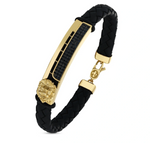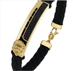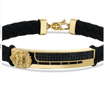 Тази ефектна златна гривна съчетава стил, екстравагантност и комфорт в един уникален аксесоар. Изработена от висококачествени материали, тя предлага невероятна лекота и удобство за ежедневно носене. Ефектната златна плочка от 14 карата декорирана с лъвска глава и черен оникс, разположени в централната част на гривната, добавят луксозен акцент и символизират сила и власт.