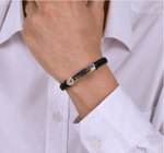 Гривната е снабдена със сигурна и елегантна закопчалка, осигуряваща стабилност и безопасност при носене, без да се нарушава стилният й вид. Идеална за мъже, които търсят комбинация от модерност и класа, този аксесоар е перфектният избор както за ежедневието, така и за специални поводи.