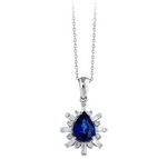 Това изискано колие със сапфир и диаманти, поставени в елегантен звездовиден обков, е истинско произведение на изкуството. Изработва се в 14 или 18 К злато, в жълт, розов или бял цвят, за да отговаря на вашия уникален стил.