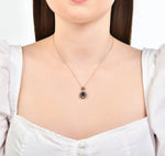 Това прекрасно бижу с висулка от сапфир, обгърнат от искрящи бели диаманти, е символ на изтънченост и стил. Съчетавайки дълбочината на сапфира с блясъка на диамантите, то е идеално за всякакви поводи.