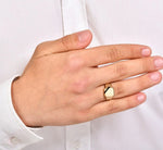 Пръстенът е изработен от висококачествено жълто злато, което създава контраст и подчертавайки луксозния му облик.