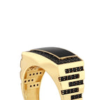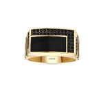 Жълто злато: Пръстенът може да бъде изработен от 14-каратово жълто злато, което придава топъл, благороден блясък и подчертава дълбокия черен цвят на емайла и ониксите.