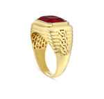 Мъжкият пръстен от жълто злато с рубин е истинско въплъщение на лукс и изтънченост. Тази комбинация от благороден метал и скъпоценен камък е не само визуално впечатляваща, но и символ на сила, страст и благородство. Този модел може да се изработва и в бяло злато.