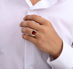 Този пръстен символизира мощ и страст. Рубинът е известен като камък на смелостта и лидерството, а съчетан със злато, той се превръща в израз на сила и авторитет. Този аксесоар е подходящ за мъже, които търсят бижу, което да подчертае техния характер и статус.