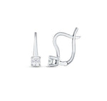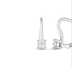 Представяме ви вечната класика - елегантните обеци във вид на изчистена висулка от единичен диамант в класически обков, изработени от бяло 14-каратово злато.