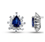 Тeзи изискани обеци с голям капковиден сапфир и диаманти (с багетна и кръгла шлифовка), поставени в зашеметяващ звездовиден обков, са истинско произведение на изкуството. Дълбоката синя красота на сапфира изпъква обградена от неотразимия блясък на димантите.