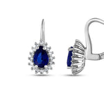 Тeзи изискани обеци с голям капковиден сапфир и диаманти, поставени в прелестен обков, са истинско произведение на изкуството. Дълбоката синя красота на сапфира изпъква обградена от неотразимия блясък на димантите.