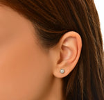 Представяме ви вечната класика - елегантните обеци с диамант в класически кръгъл обков, изработени от бяло 14-каратово злато. Този изискан модел акцентира на централно разположения диамант, който блести с изключителна яснота и преливаща светлина.
