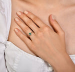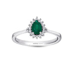 Потопете се в света на лукса и елегантността с нашия изключителен диамантен пръстен, който съчетава изкрящи бели диаманти с различна чистота и едър, капковиден изумруд, изящно поставен в зашеметяващ обков. Всеки детайл от този уникален бижутерски шедьовър е проектиран, за да подчертае вашата индивидуалност и стил.