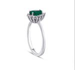 Изработен от 14K бяло злато, пръстенът не само сияе, но и предлага дълготрайна издръжливост и комфорт. Диамантите, блестящи в различни чистоти, добавят допълнителен блясък и елегантност и хармонично приласкават в елегантни си обков централният изумруд, с неговия наситен зелен цвят, който придава уникален и неповторим акцент.