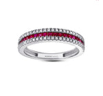 Потопете се в лукса с нашата изискана диамантена халка, изработена от бяло злато 14K. Тази невероятна халка е украсена с рубини от най-високо качество, прецизно шлифовани в елегантна princess cut форма, които разкриват своята дълбочина и интензивен цвят.