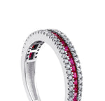 Съчетанието от блестящите диаманти и наситените рубини създава незабравим контраст, който привлича погледите и добавя нотка на изтънченост. Изработена с внимание към детайла, халката е не само стилна, но и изключително удобна за носене.