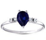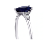 Стилен пръстен с голям капковиден сапфир, заобиколен от инструктирани диаманти, е неповторим шедьовър. Дълбоката синя красота на сапфира изпъква обградена от неотразимия блясък на димантите.