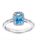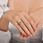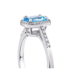 Елегантен пръстен със син топаз и бели диаманти в класически овален обков. Изработен от 18 карата злато, този пръстен никога няма да излезе от мода и добавя нотка лукс към всяка визия.
