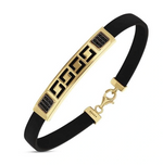 Тази елегантна и стилна гривна е истински хит сред мъжките аксесоари. Изработена от масивна гума за максимален комфорт и издръжливост, тя е съчетана с луксозна златна плочка от 14 карата, с красива орнаментика.