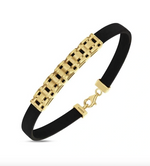 Тази елегантна и стилна гривна е истински хит сред мъжките аксесоари. Изработена от масивна гума за максимален комфорт и издръжливост, тя е съчетана с луксозна златна плочка от 14 карата, с красива орнаментика.