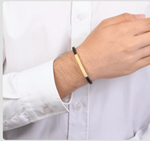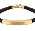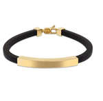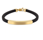 Тази изискана мъжка гривна съчетава стил и комфорт в един уникален аксесоар. Изработена от висококачествена гума, тя предлага невероятна лекота и удобство за ежедневно носене. Масивната златна плочка от 14 карата, разположена в централната част на гривната, добавя луксозен акцент, който подчертава елегантността на целия дизайн.