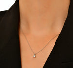 Това колие от бяло злато с голям диамант е изтънченo и елегантно произведение на изкуството. Диамантът е нежно обгърнат в класически обков, който подчертава неговата красота и блясък. Изчистеният дизайн позволява на диаманта да засияе, правейки колието идеално допълнение за специални поводи или за ежедневна носене. Със своето изящество и стил, това колие е перфектният избор за всяка жена, която желае да изрази своята индивидуалност и изискан вкус. Изберете вечната класика, за да бъдете забелязана!